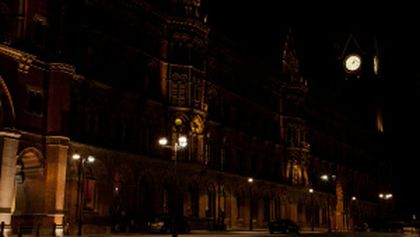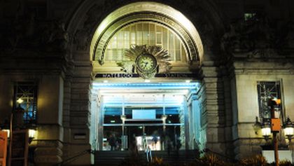 Waterloo station entrance at night