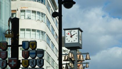 Swiss clock and bells in Leicester Square